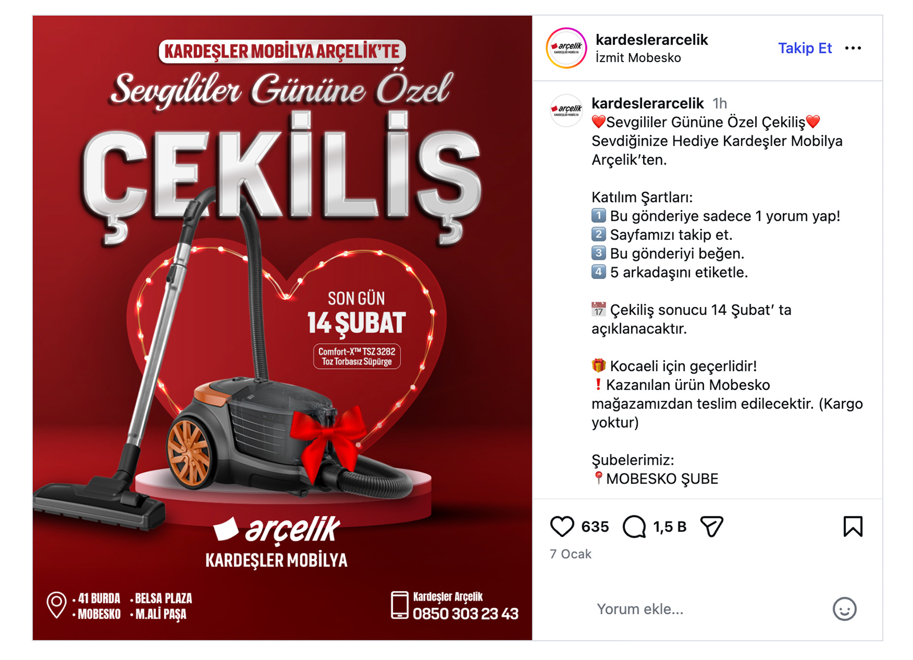 14 Şubat Sevgililer Günü, Instagram’da markalar, butikler, küçük işletmeler veya ınfluencerler için yalnızca romantik bir özel gün değil; aynı zamanda etkileşimi artırmak, yeni takipçiler kazanmak ve marka sadakati oluşturmak için büyük bir fırsattır. Özellikle doğru planlanmış bir Instagram çekilişi, kısa sürede yüksek görünürlük ve güçlü geri dönüşler sağlar.